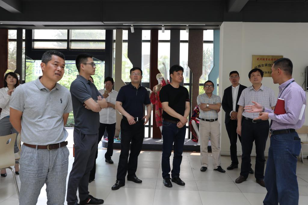 顾亚兴对学校的热情接待表示感谢,并简单介绍了海宁市的区位优势以及提速融杭的总体情况。他表示,通过实地走访杭职,对于下一步深入开展跨界合作充满信心。王水鑫介绍了许村家纺产业的基本情况,他对我校校企深度融合工作成效深感震撼,并对许村镇与学校开展镇校合作,服务家纺产业转型升级充满期待。海宁家纺协会会长曹咬强表示,家纺协会的设计平台需要高职院校基于校企合作的人力和技术支持。