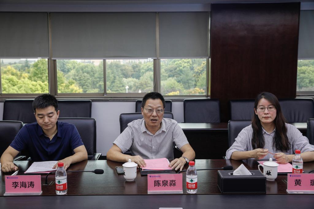 陈泉淼对陈金泉一行到校调研表示热烈欢迎,并简要汇报了学校有关情况。他表示,学校下一步将继续努力,遵循区委、区政府决策部署,推动钱塘文化繁荣发展、促进经济体系优化升级、实现文化产业高质量发展,努力为建设高水平现代化国际化一流新区、打造高能级战略平台贡献力量和智慧。