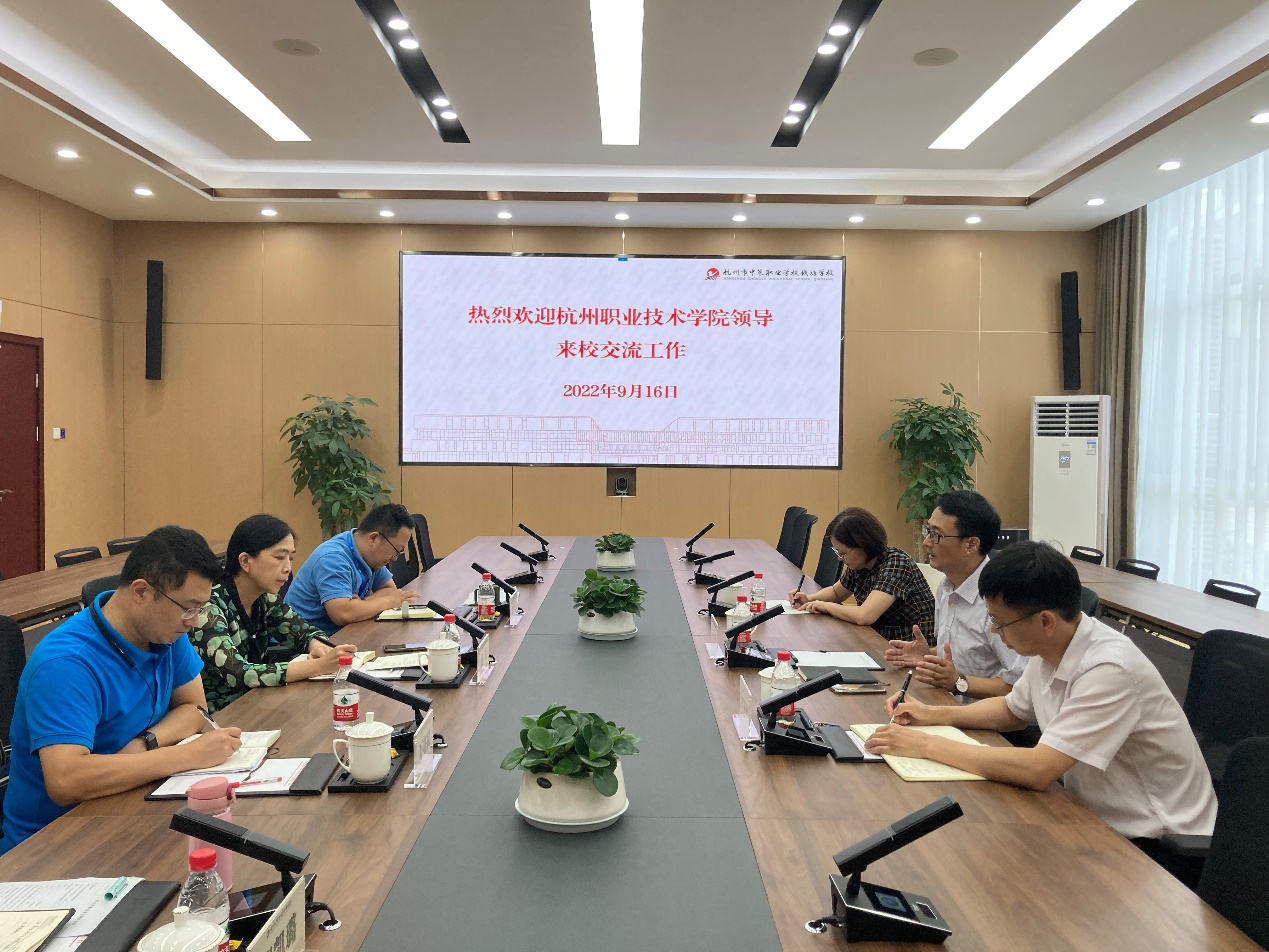 9月16日下午,副校长楼晓春、教务处处长童国通、信息工程学院副院长林海平一行前往杭州中策职业学校钱塘学校调研区域中高职一体化试点办学工作。中策钱塘学校校长包红、副校长万亮斌、戚成启参加接待调研。