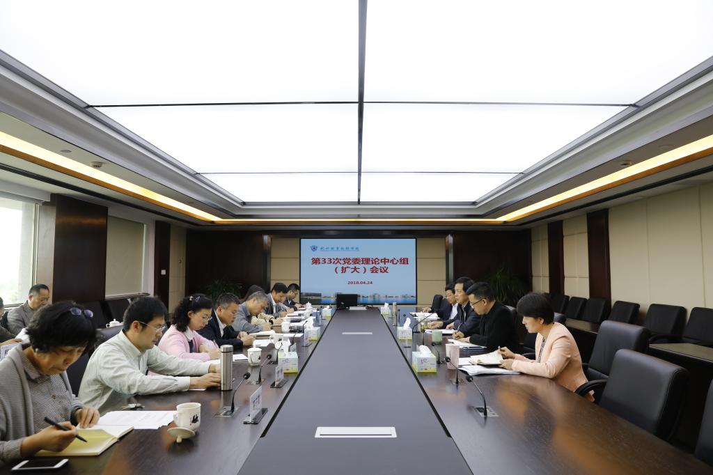 4月24日下午,我校第33次党委理论中心组(扩大)学习会议在行政楼第一会议室召开,专题学习贯彻全国“两会”精神。学校党政班子成员金波、贾文胜、张洪宪、金徐伟、麻朝晖,以及各党总支书记参加会议。