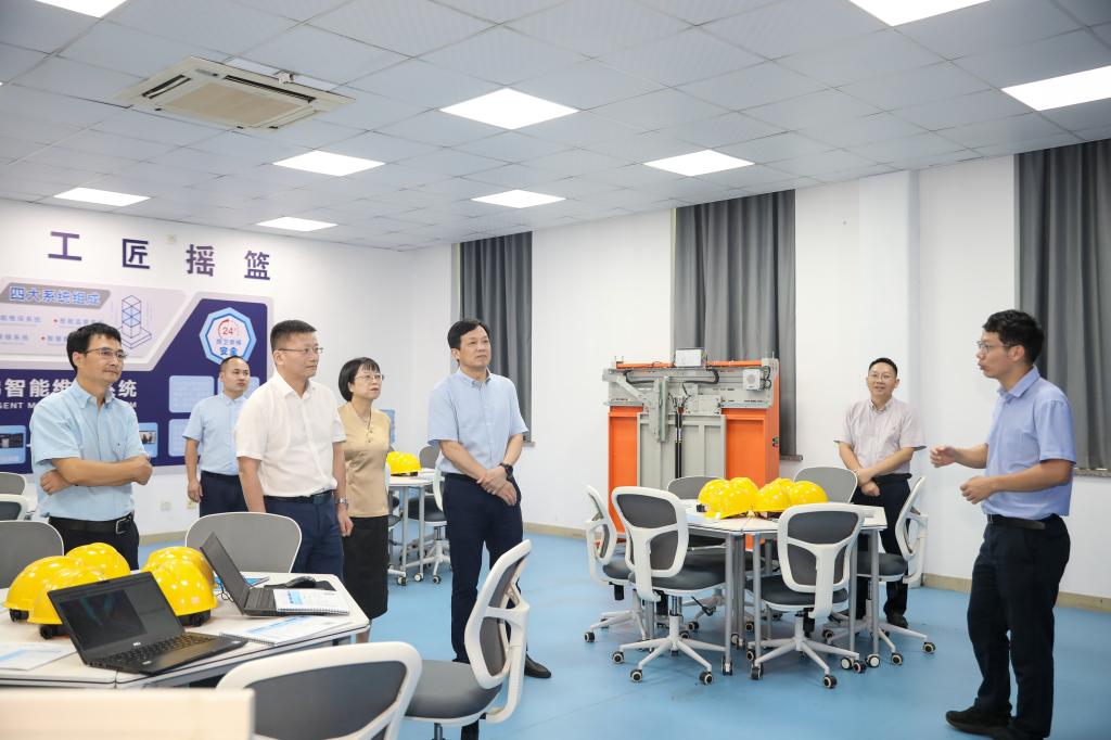 陈文岳一行依次参观了友嘉智能制造学院、特种设备学院、动漫游戏学院。随后双方在行政楼528会议室进行交流座谈。