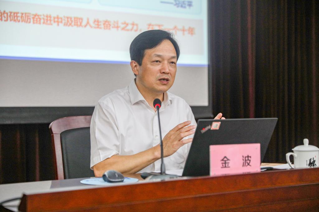 金波以新时代十年变革为切入口,从国家、省、市三个层面,讲述了新时代10年的巨大变革,希望同学们能够肩负起建设美好新时代的职责和使命,干在实处、走在前列、勇立潮头,以永不懈怠的精神状态走好新的赶考之路,在这片热土上,创造无悔青春,书写壮丽人生。