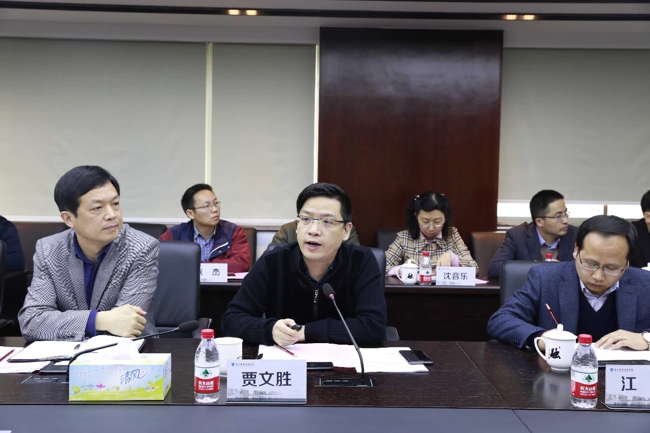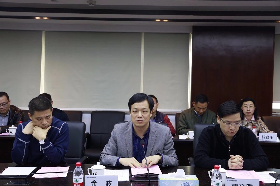 在汇报会上,党委书记金波代表学校致欢迎辞,并向专家介绍了我校的办学理念、办学特色和办学成效。校长贾文胜以“兴趣为本、创新为要、实战为上,全面深化‘3334’创新业教育模式改革”为题向专家组汇报了学校近年来在创新创业教育方面的主要做法和成效。近年来,我校坚持以“创业带动学业,提升就业能力”“创业成功是教学成果,创业失败也是教学成果”等理念为引领,在全国首开学生在校真实注册公司进行创业先河,打造了区校共建、理念先进、成效明显的“国家级”高职学生创业园;通过实施创业学生个性化培养服务、创业成果学分认定和柔性教学管理等制度,创新性地解决了在校生“创业与学业”的矛盾;每年设立“护犊资金”,为创业学生保驾护航;发挥校企共同体办学优势,整合政府、行业、企业资源共建创新研发平台,共育“生涯规划导师、专业创新导师、创业指导教师”三支队伍,系统构建了“通识教育+创新教育+专门教育+创业实践”的四阶段渐进式教育体系,探索形成了“3334”创新创业人才培养模式,有效实现了创新创业教育与专业教育的有机融合,显著提升了学生创新创业能力和就业质量,很好地发挥了创业带动就业的倍增效应。