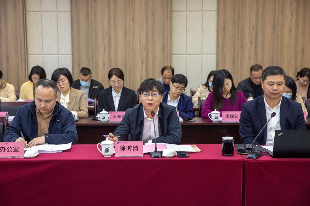 徐时清代表学校对各位领导、专家来杭职院指导工作表示热烈欢迎和衷心的感谢。他指出,绿色学校创建是贯彻落实党的二十大精神、践行习近平生态文明思想的重要举措,也是学校实现绿色、高质量、可持续发展的重要途径。绿色学校创建评价验收专家组进驻杭职院是对学校绿色学校创建工作情况的一次全面深入的体检,必将对杭职院各项事业的持续、快速、健康发展产生积极而深远的影响。徐时清表示,学校将从三个方面推进学校绿色学校创建工作,一是坚持以习近平生态文明思想为指导,认真推进绿色学校创建取得了实实在在的建设成效;二是以最高标准、最严要求,周密部署绿色学校长效机制建设,切实把专家组的意见、建议转化为绿色学校创建的具体行动;三是进一步巩固深化建设成果,积极向优秀兄弟院校学习取经,全面提升,深化拓展绿色学校创建成果。