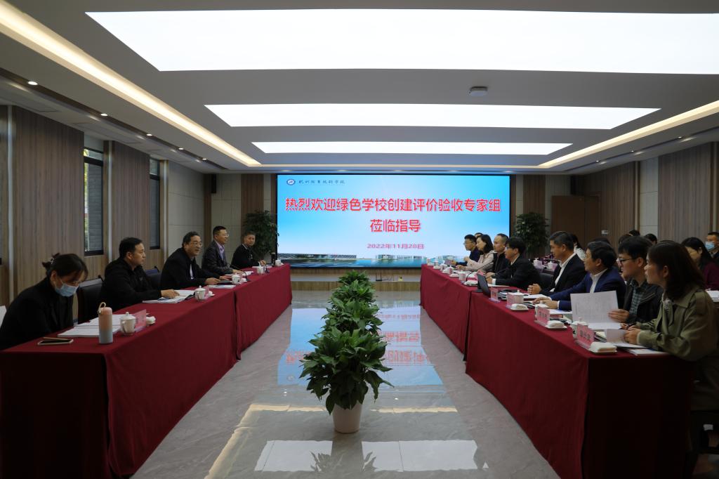 11月28日,浙江省绿色学校(高等学校)创建评价验收专家组一行5人莅临杭州职业技术学院,对学校绿色学校创建工作进行评价验收。校长徐时清,副校长程利群,各职能部门、二级学院负责人及绿色学校创建工作领导小组办公室成员参加会议。