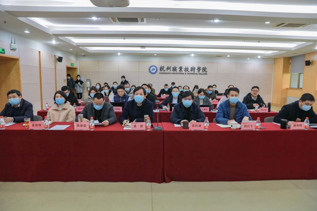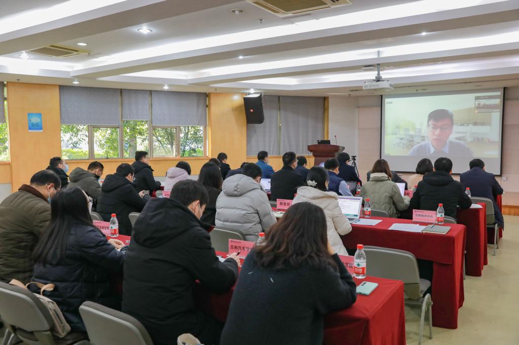 王博以视频连线方式作了题为《转变思路全体动员精益求精》的报告。他从背景分析、总体思路、材料体系、现场考察四个方面对职业本科学校申报准备工作进行全面系统地解读。既有理论分析、又有政策解读,内容丰富、重点突出、精准到位,对我校下一步做好“升本创大”筹备工作具有很强的指导意义。