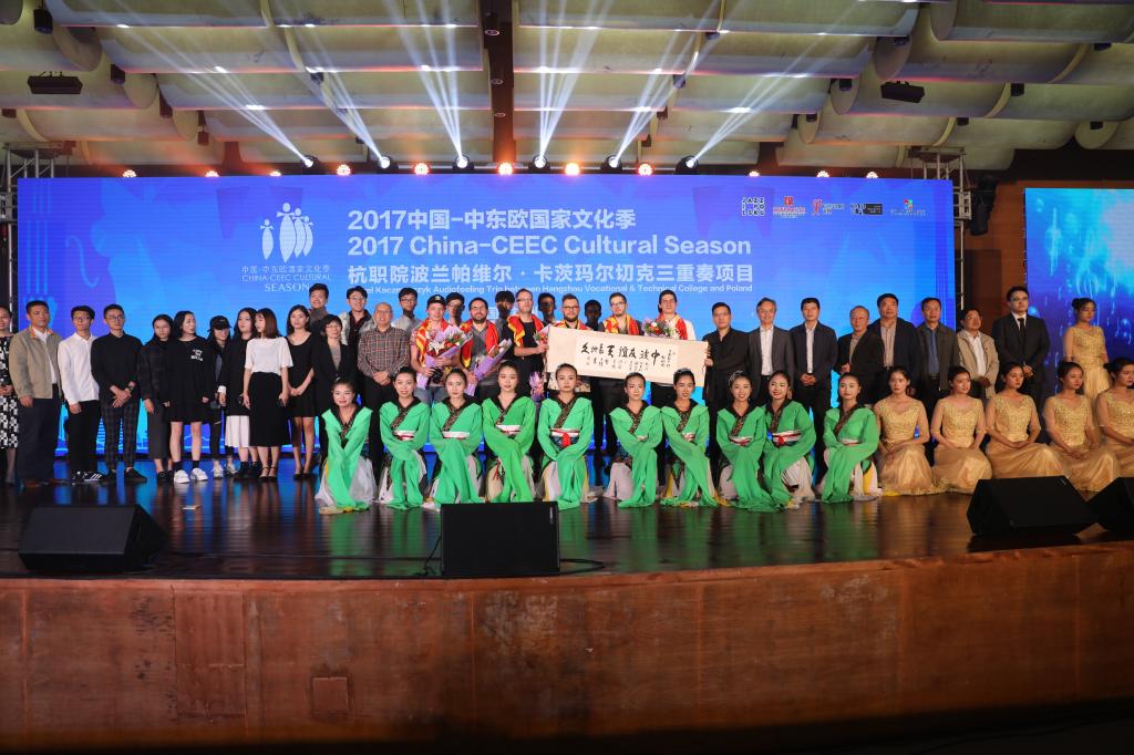 10月18日晚,“2017中国-中东欧国家文化季之杭职院波兰帕维尔•卡茨玛尔切克三重奏项目”在学校图书馆报告厅隆重举行。杭州市人民政府副秘书长杨建华,杭州市文广新局副局长陆小龙,杭州经济开发区管委会副主任何铨寿,浙江省教育厅下沙高教办主任胡慧华,白杨街道党工委书记李悦清,市文广新局对外交流处副处长王吉等领导嘉宾莅临现场,校党委书记安蓉泉、校长贾文胜携全体党政领导班子成员、中层干部、师生共800余人共同观看演出。