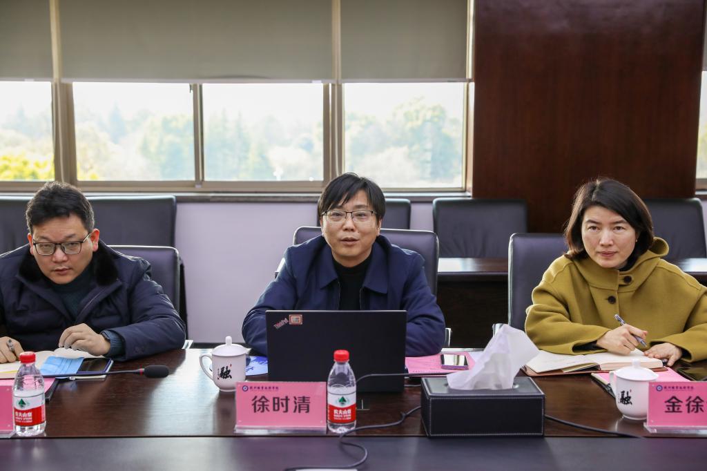 徐时清代表学校对黄冈职业技术学院党委书记田洪光一行的到来表示热烈欢迎,并全面介绍了学校的发展历史、办学特色和办学成效,重点阐释了学校创建“数智杭职·工匠摇篮”的发展目标和愿景。