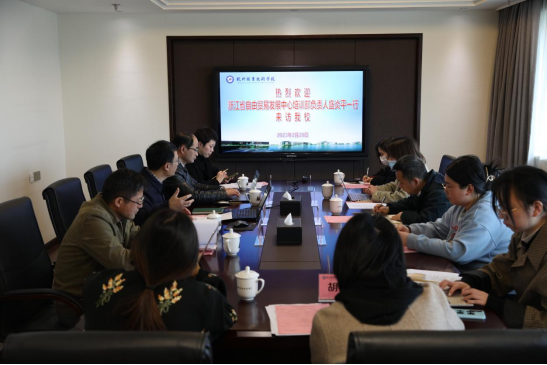 2月28日下午,浙江省商务厅浙江省自由贸易发展中心培训部负责人盛炎平一行来访我校。我校副校长楼晓春,国际交流合作处、商贸旅游学院、信息工程学院相关负责人参与接待。
