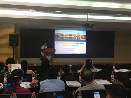 童国通从新高考招生形势特点、新高考志愿填报及投档、志愿填报参考策略和我校2017年招生情况等四个方面结合学校实际对全体参会人员做了详细的解析与培训,并就下阶段招生宣传咨询工作做了明确分工与周密部署。
