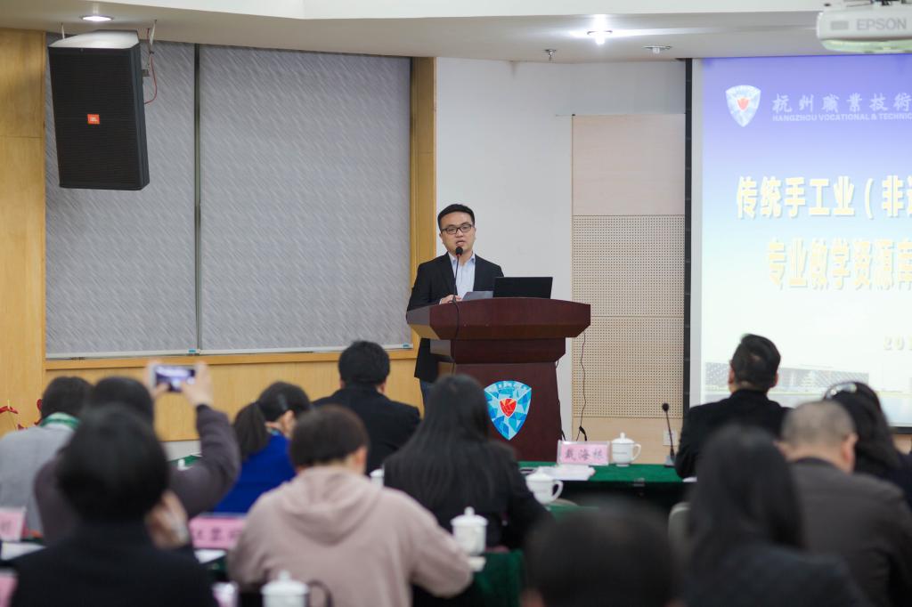 项目资源库合作共建单位、西泠印社社务委员会社团处副处长戴海栋指出,与我校牵手共建“非物质文化遗产传承教学创业基地”,是西泠印社探索“现代学徒制”模式培养非遗传承人的有益尝试,是名社与高校有机结合、反哺社会、服务公众的有效探索。西泠印社也将一如既往地和我校共同推进非遗专业教学资源库项目的各项建设工作。