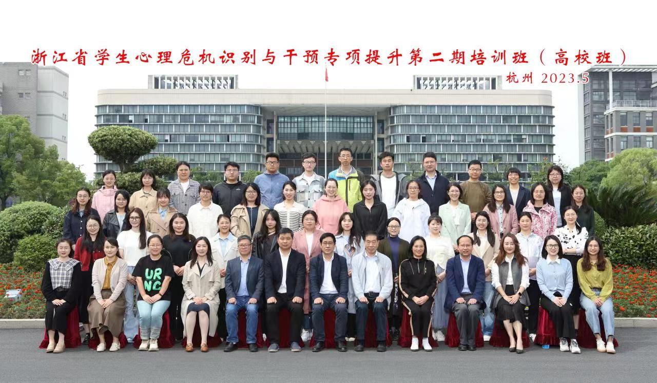 5月8日,浙江省教育厅、浙江省科学技术协会、浙江省精神卫生工作办公室指导,浙江省高校心理危机干预研究中心、浙江省心理卫生协会为主办,我校承办的浙江省心理危机识别与干预专项能力提升高校第二期培训班开班仪式在马克思主义学院明德讲堂举行。浙江省教育厅宣教统战处处长陈雷,浙江省心理卫生协会理事长赵国秋,浙江省高校心理危机干预研究中心执行主任傅素芬,浙江省精神卫生办公室主任徐松泉,我校党委委员、副校长程利群出席 。开班仪式由傅素芬主持,来自全省的42所高校心理中心主任或骨干专职心理教师参加此次培训。