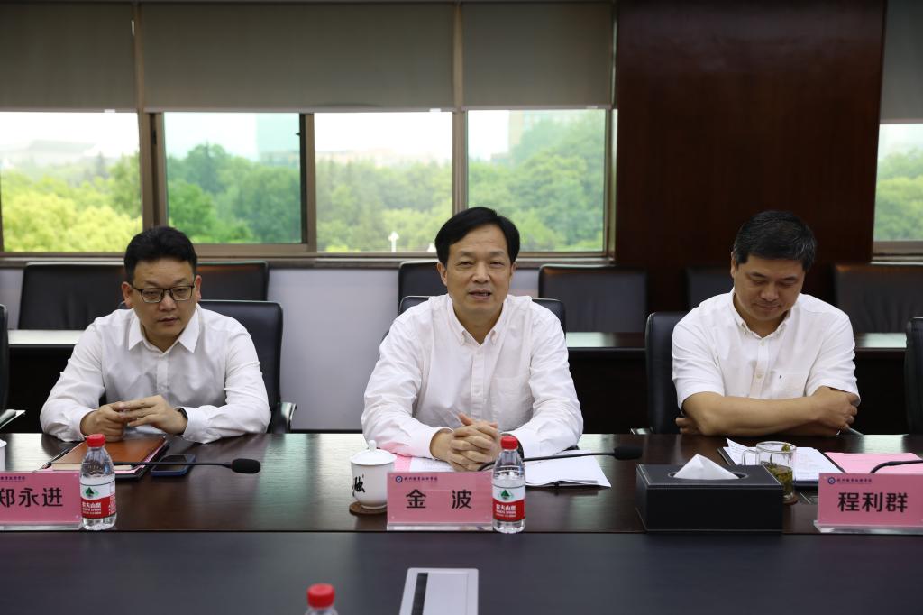 金波代表学校对李宏印一行表示热烈欢迎,简要介绍了学校的办学目标、办学方针、办学特色以及办学成效。他指出,学校紧紧围绕杭州“数字经济第一城”发展目标,坚持“立足钱塘区,服务杭州市”办学定位,着力搭建产教融合协同创新育人平台,构建数字技术人才培养体系,打造新生态新业态下的技术技能人才培养高地,致力于成为高等职业教育数字化转型的创新者、产教科教多维融合创新发展的先行者。