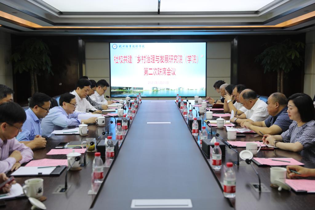 5月25日下午,社校共建“乡村治理与发展研究院(学院)”第二次联席会议在我校行政楼528会议室顺利召开,贵州省中华职业教育社专职副主任罗国庆,浙江省中华职业教育社副主任仉贻泓、秘书长梁成岗,遵义职业技术学院院长颜永强、副院长唐小宇,我校党委书记金波、副校长楼晓春、程利群出席,遵义职业技术学院相关职能部门、二级学院负责人及我校办公室、教务处、继续教育学院相关负责人参加。