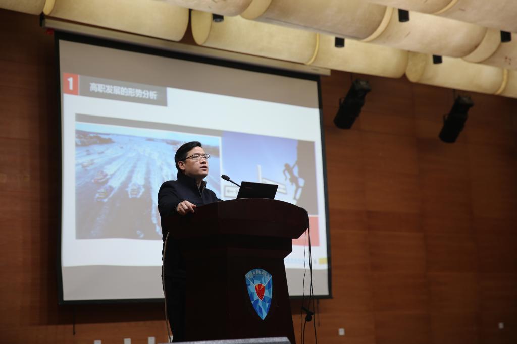 校长贾文胜以“翻篇归零再出发 实干兴校续辉煌”为题,从高职发展的形势分析、高职发展的聚焦点、《学校2017党政工作要点》解读三个方面作了重要讲话。