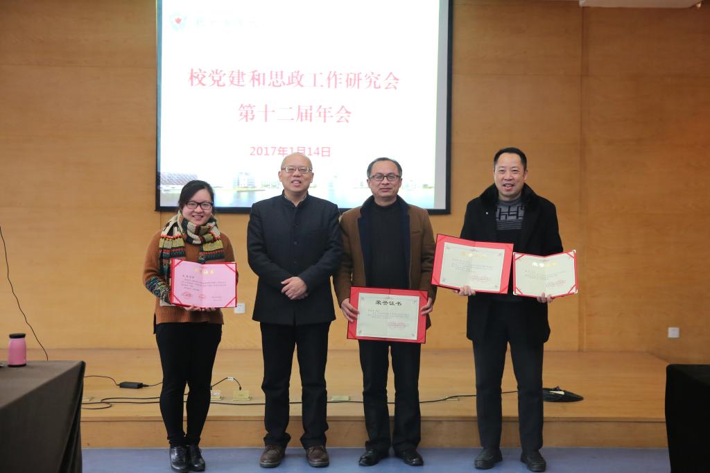 会上,宣传部长麻朝晖作校党建和思政工作研究会2016年度工作总结。组织部长金徐伟宣读会年会论文评选结果和省党建研究会论文评选获奖者名单。党委书记安蓉泉为获奖者颁发奖状。