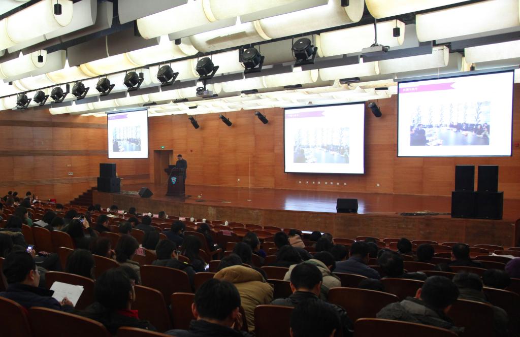 1月4日下午,第六届学校发展论坛在图书馆一楼报告厅举行。校长贾文胜、副校长许淑燕、纪委书记陈泉淼出席论坛。论坛由许淑燕主持,华东师范大学职业教育与成人教育研究所徐国庆教授和匡瑛副教授作为点评专家,我校300余名教职工参加论坛。