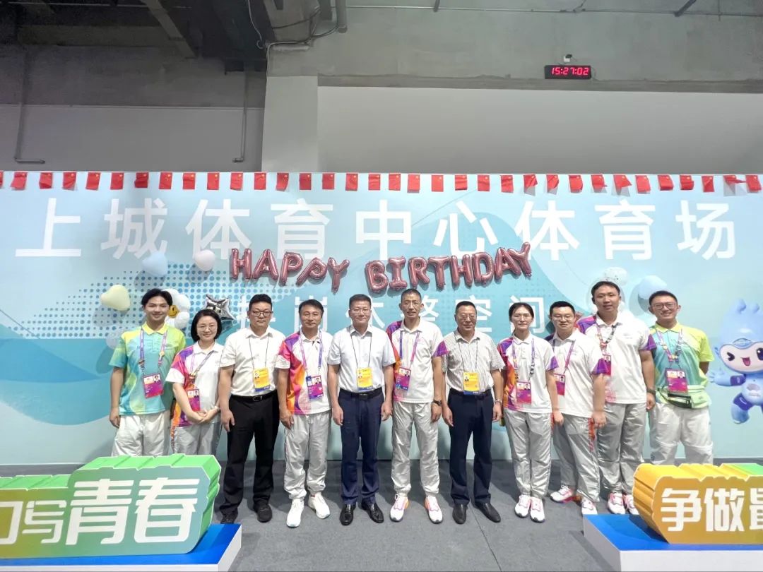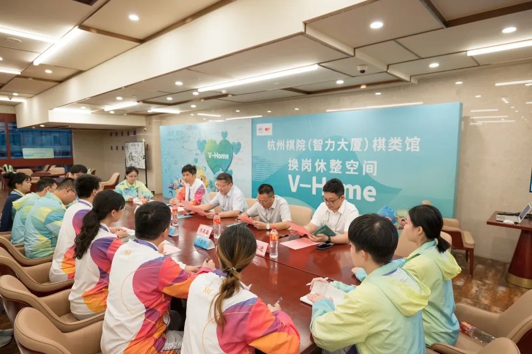 在上城体育中心体育场志愿者换岗休整空间,陈文岳、陈泉淼、于广滨与小青荷代表一起切开生日蛋糕,共同度过了一场温馨且感动的集体生日会,见证了亚运场馆里这份特别的爱与温暖。随后,赴萧山,与杭州棋院(智力大厦)棋类馆指挥层交流了校馆合作共建情况,并听取了志愿者的工作汇报和收获感想。