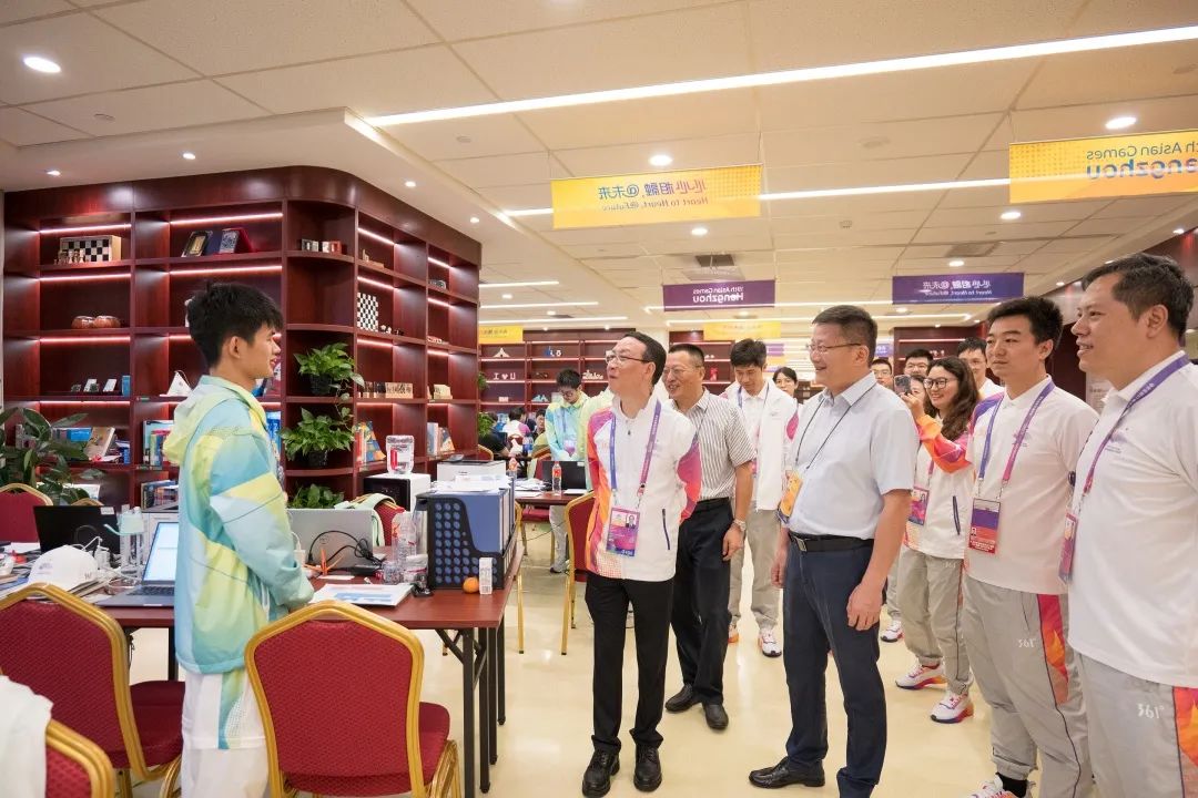 10月3日下午,杭州职业技术学院党委书记陈文岳、党委副书记陈泉淼一行赴亚运竞赛场馆进行走访调研,看望慰问正在参与亚运志愿服务的杭职“小青荷”们。杭州棋院(智力大厦)棋类馆运行团队指挥长应雪林、上城体育中心体育场运行团队常务副指挥长于广滨等陪同走访慰问。学校办公室、场馆志愿团队负责人参加。