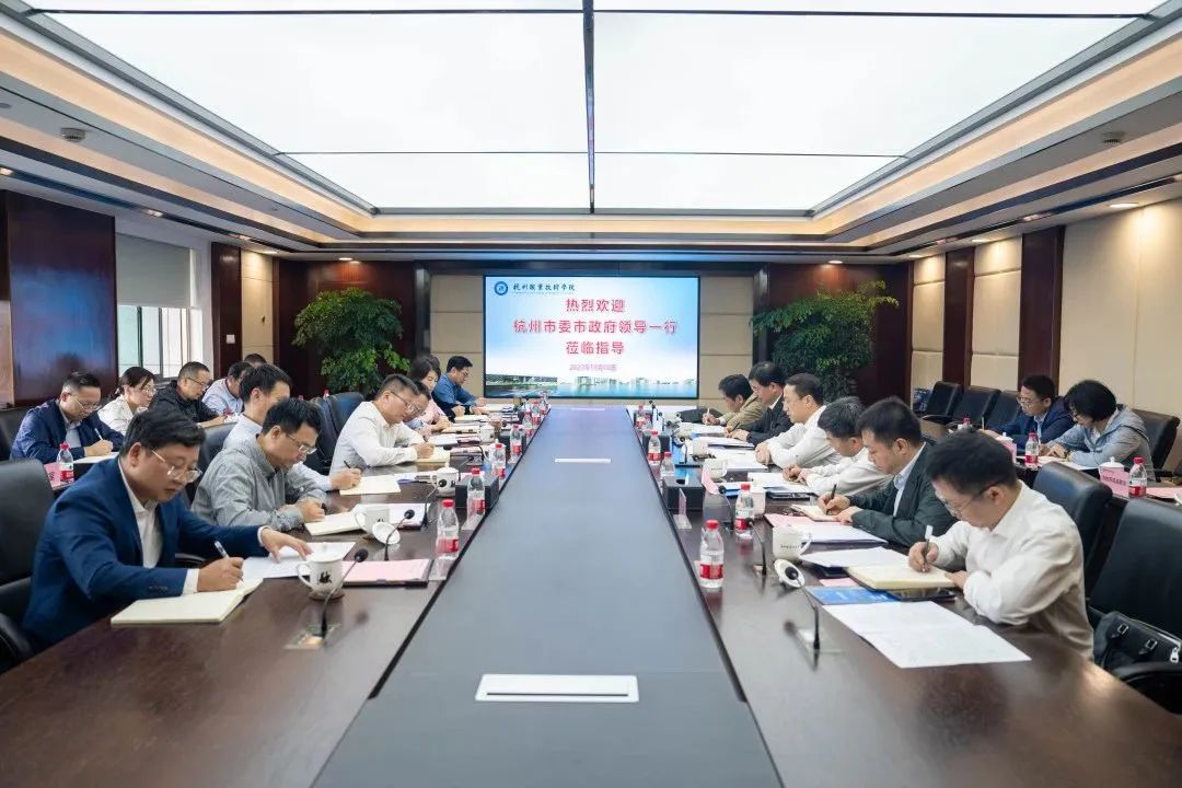 10月8日上午,市委常委、市政府党组成员方毅一行来校考察调研。市政府办公厅、市教育局、市发改委、市财政局负责人陪同调研。学校党委书记陈文岳等在校领导班子成员参加调研。陈文岳书记代表学校向方毅一行全面汇报了基本办学情况、办学特色、主要成效以及存在困难挑战、下步打算,并表示全校上下将在市委市政府的重视支持下,举全校之力抢抓“窗口期”,加大“申本创大”步伐,努力打造职业教育高质量发展的“杭州样板”。