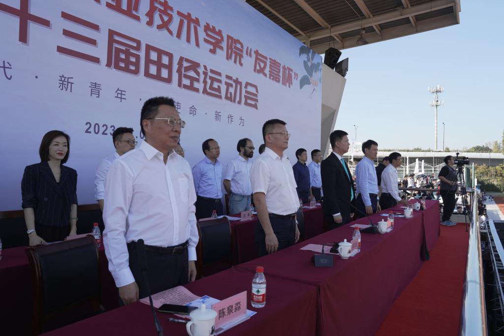 党委书记陈文岳,党委副书记陈泉淼,纪委书记高云飞,副校长金徐伟、楼晓春,党委委员、组织部部长麻朝晖,以及相关职能部门、二级学院负责人参加了开幕式。陈文岳宣布运动会开幕,陈泉淼和友嘉国际数控机床有限公司战略营销总监刘伟先后致辞,楼晓春主持运动会开幕式。
