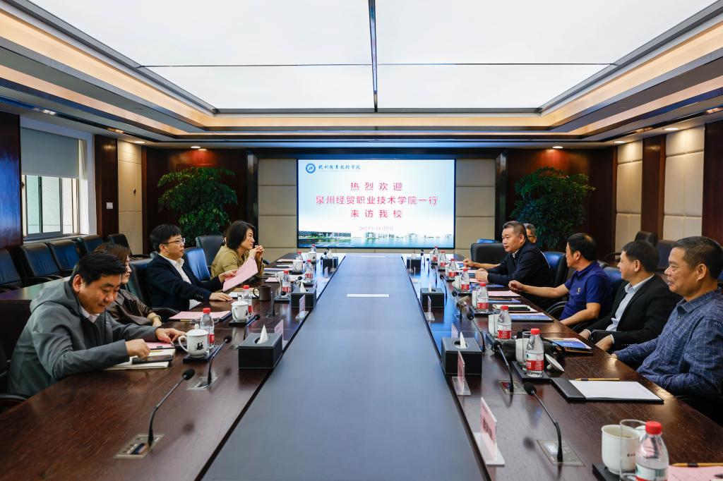 11月9日上午,泉州经贸职业技术学院校长黄敬前一行来访我校,校长徐时清、副校长金徐伟,办公室、人事处、教务处、学工部等相关部门负责人参与接待。黄敬前一行依次参观了友嘉智能制造学院、达利女装学院、商贸旅游学院,随后双方在行政楼528会议室进行座谈。