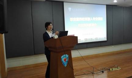 许淑燕首先重新温习了《国务院关于加快发展现代职业教育的决定》、《高职教育创新发展行动计划》等文件精神,与全体教师再认识职业素养教育的重要性,然后从课堂要求、课堂设计、课堂氛围、课堂合作、实训环节、总结环节等6个方面40个要点结合近年来学校职业素养教育的经验、观摩课、说课比赛等实践观察中教师在实践职业素养教育中生动案例对“方法指南”进行细致解读。