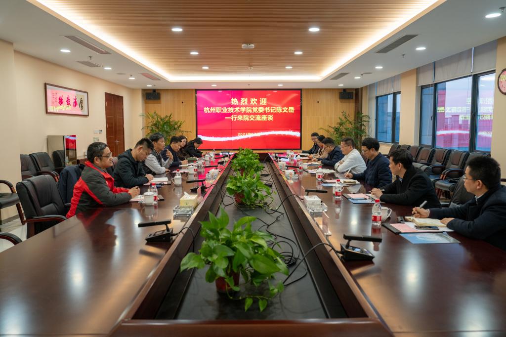 随后召开的座谈会上,陈文岳首先对省特科院为行校合作、为杭职院发展提供的支持表示感谢。他高度赞扬了省特科院改革格局高、理念先进、成效显著,在基地建设、科学研究、人才培育等方面走在前列。陈文岳表示,双方的合作内容可以更广些、共同参与的事项可以更多些、融合的程度可以更深入些。双方可以充分利用各自的优势资源,实现双向赋能,并希望以此为契机,寻找新的合作增长点,升级行校合作,提高科创策源能力,进一步推动科研成果的转化和落地,共同促进职业教育事业发展。