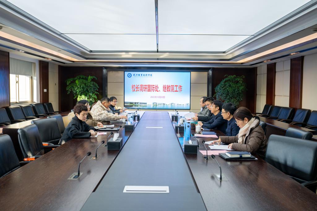 12月22日上午,校长徐时清深入国际交流合作处、继续教育学院调研指导工作。副校长楼晓春,办公室、人事处、财务处等部门相关负责人陪同参加调研座谈会。