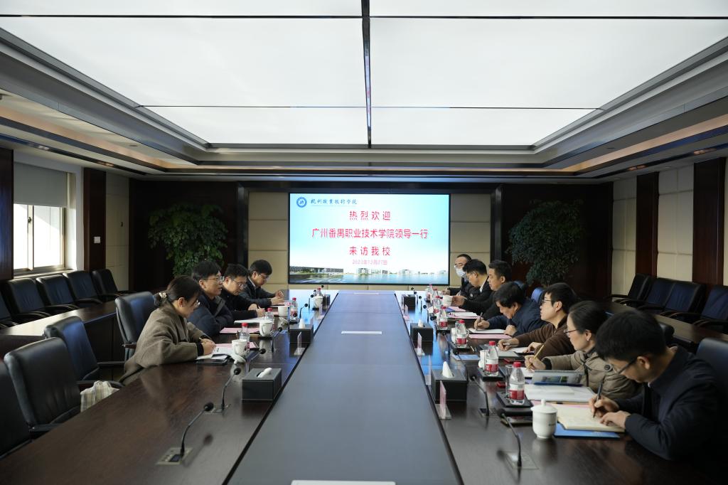 马仁听对学校的热情接待表示感谢,并简要介绍了广州番禺职业技术学院的发展情况。他表示,杭职院的校企合作多元模式机制完善、亮点纷呈,成效显著,在职业教育改革方面走在了前列。他提出,两校同为国家“双高计划”第二类高水平学校建设单位,希望能进一步加强沟通联系、扩展校际合作、推进师生交流,在服务国家战略、融入区域发展、促进产业升级中充分彰显职教担当。