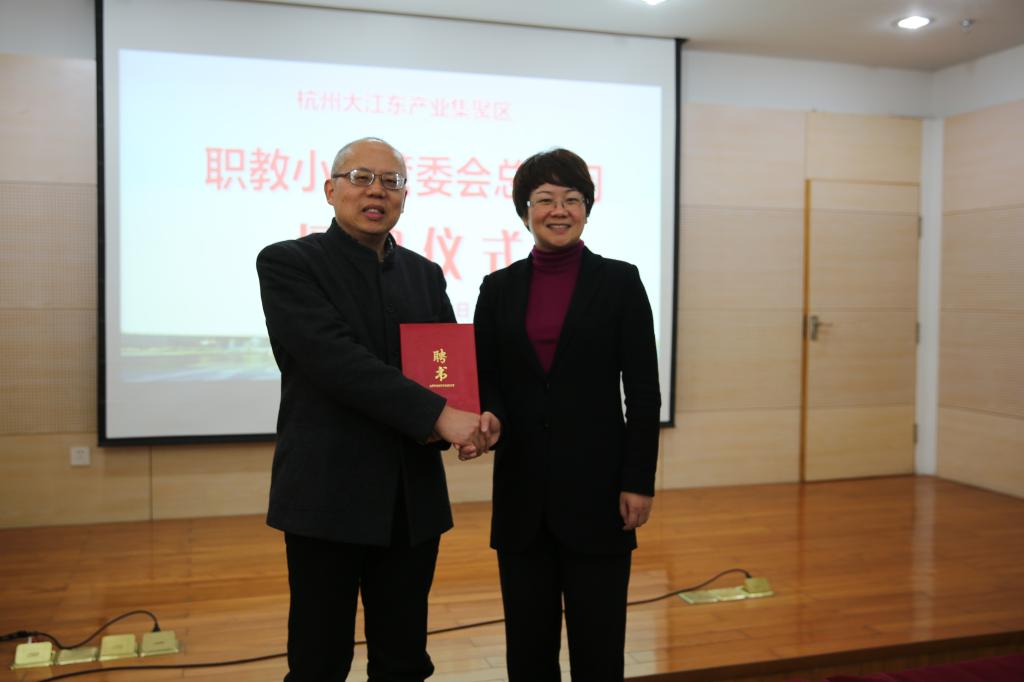 会上,大江东管委会副主任李国梅代表管委会向安蓉泉颁发了大江东职教小镇建设总顾问聘书。