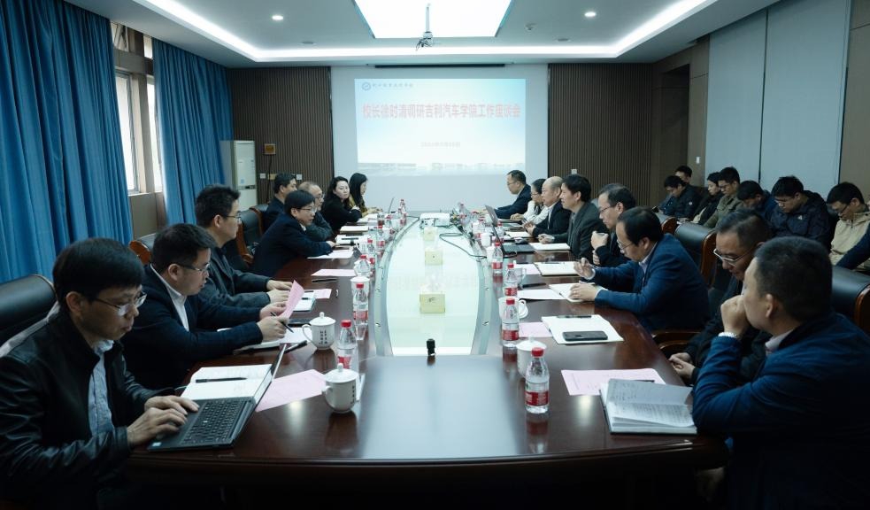 徐时清认真听取了吉利汽车学院建设发展情况汇报,充分肯定了吉利汽车学院近年来的改革发展成绩,并围绕学院下一步如何认真贯彻落实学校部署、加快创新发展给予悉心指导。
