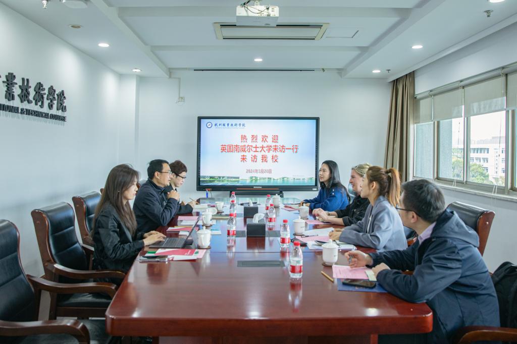 3月28日上午,英国南威尔士大学国际处主管Kim.Williams、国际处区域经理Ella一行4人来访我校,副校长楼晓春、国际交流合作处相关负责人参与接待。