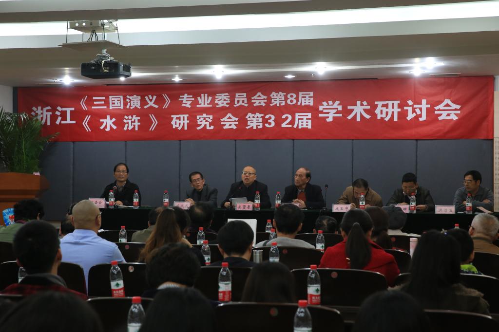 1114日上午,我校行政服务中心第三会议室座无虚席,浙江《三国演义》专业委员会第8届、浙江水浒研究会第32届学术研讨会在这里准时召开。本届研讨会由浙江水浒研究会、浙江《三国演义》专业委员会主办,杭州职业技术学院承办。来自浙江大学、浙江师范大学、浙江工商大学、杭州师范大学等高校和浙江各地的《三国演义》、《水浒传》研究专家约50人齐聚善湖之畔,共同探讨两大古典长篇小说名著的作者与杭州和东吴文化的关系,以及它们的版本、人物、传播、创作艺术、近年来的一些相关观点等。