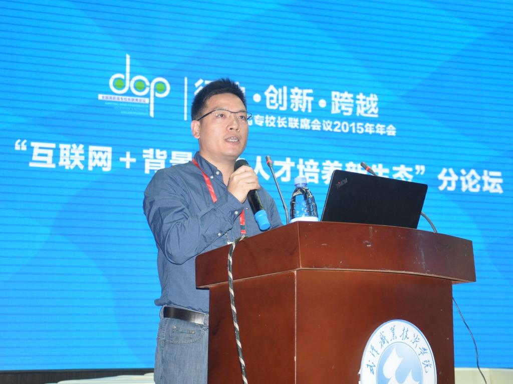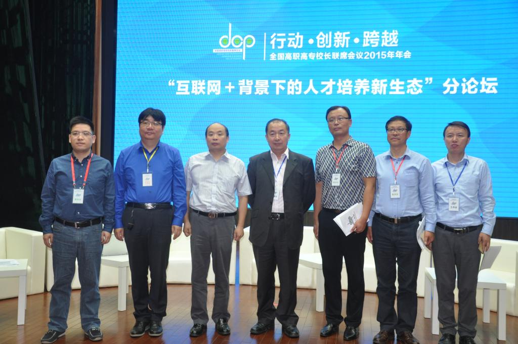 贾文胜校长主持了本次年会“互联网+背景下的人才培养新生态”分论坛。在“互联网+”背景下,信息技术的快速发展给高职教育人才培养带来了革命性的变革。如何合理地设计人才培养的模式与路径,如何开发和应用适用的教学内容与资源,如何构建教学运行的良好技术环境,如何评价教学的绩效及认证学习的成果,已成为摆在高职院校面前的紧迫课题。分论坛上,人社部职业技能鉴定中心副研究员、《中国培训》杂志编辑部副主任许远,教育部创业培训指导委员会主任委员、中科创大创新创业教育研究院院长李肖鸣,黄河水利职业技术学院党委副书记、副院长王卫东,北京电子科技职业学院艺术设计学院院长刘正宏作为特邀嘉宾进行了演讲,通过专家视角、互动沙龙、多维互动,为与会代表提供了一个学习与交流的平台,共同探索“互联网+”背景下职教人才培养新模式。