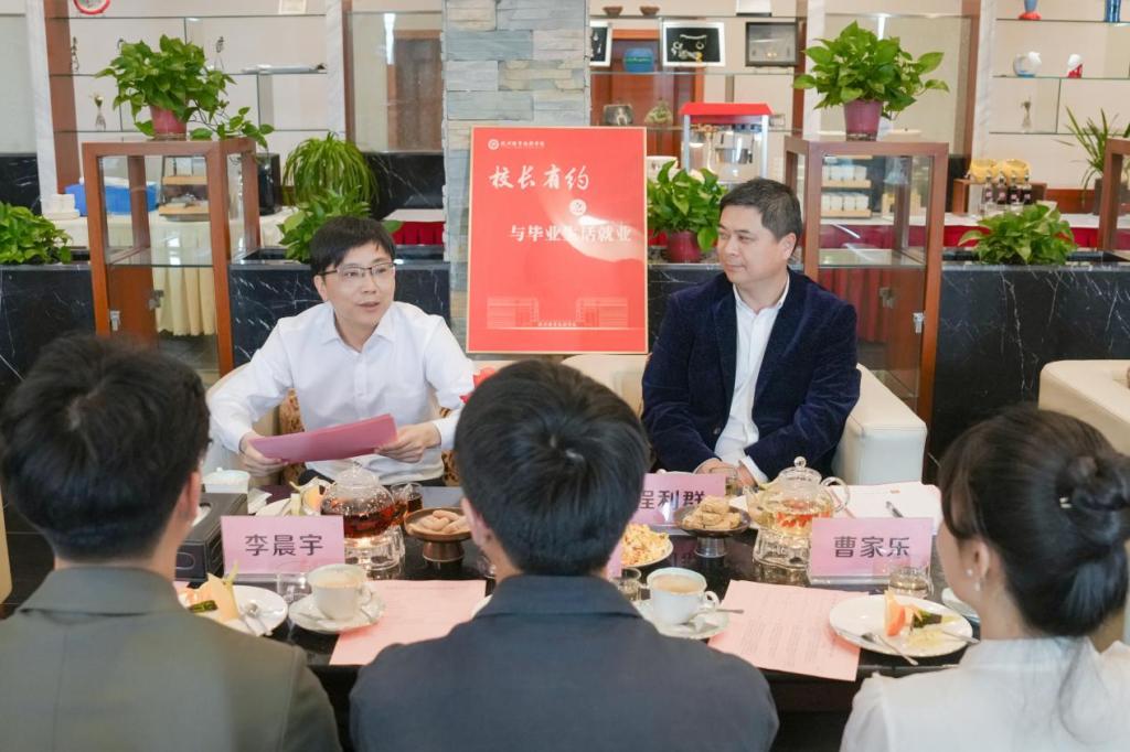 4月29日下午,学校在教工餐厅二楼开展“校长有约”活动,校长徐时清与来自各个学院的毕业生代表共话“就业”。副校长程利群参加座谈交流。