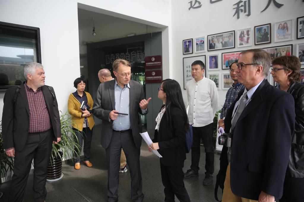 在随后的座谈会上,校长贾文胜详细介绍了我校的发展历程、办学理念和校企共同体建设所取得的办学成就,并表达了愿意与法国相关高校进行合作的一些想法。克劳德高达尔一行对我校与区域产业深度融合发展所形成的鲜明办学特色和成效给予了高度评价,对推进与我校的合作产生了浓厚的兴趣。双方就项目合作、师生互访等方面的问题进行了初步的沟通和探讨。克劳德高达尔一行希望能进一步了解我校的专业设置、教学安排等情况,也欢迎我校到普瓦提埃相关高校考察交流,以推动双方的项目合作与交流。