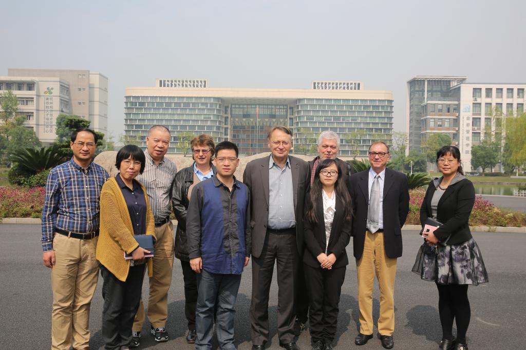 10月14日上午,由法国普瓦提埃学区中法项目高级专员克劳德高达尔、Bourcefranc滨海学校海洋文化专业负责人玛丽安佩利兹、拉罗谢尔酒店职业学校校长塞瑞里杰尼斯、普瓦提埃大学视听专业硕士点负责人丹尼斯博瓦斯、普瓦提埃学区中法项目高级专员助理谌兴脂等组成的法国普瓦提埃大区教育代表团一行5 人,在浙江省教育国际交流协会专职副秘书长何杏华的陪同下来访我校。我校校长贾文胜及外事办、新通国际学院、金都管理学院等相关部门负责人参与接待。