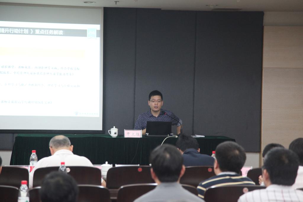 校长贾文胜在会上作了学校“十三五”规划专题辅导讲座,详细阐述了现代学徒制的背景、理念、做法和思考。他认为,以企业为主体的工学结合人才培养模式即是现代学徒制。从类型上看,现代学徒制可分为供给引导型和需求引导型,德国、瑞士的职业教育模式便是后一类型的代表,即以企业需求为主推力。他指出,现代学徒制呈现以下发展趋势:学徒制对象在扩大,从传统行业向广阔的行业扩展;学徒制的项目呈现阶梯化和模块化;学徒制与正规教育的整合在快速推进等。他认为,现代学徒制主要特征是:企业为主、工学结合、学校为企业技能培训提供理论基础。对我校现代学徒制探索而言,关键要调动企业的积极性,解决企业的需求点和利益点;要做好学生的职业规划设计,让兴趣和职业有效结合等。需要关注的难点是:以企业为主制定职业资格标准;培训的主要场所是企业(含校中厂);先是企业人,然后是学生;注重学徒培养的过程记录等。会上,贾文胜也为大家解读了中国职业教育二十年政策走向、全国职业教育工作专项督导报告、教育部职业院校管理水平提升行动计划等内容。