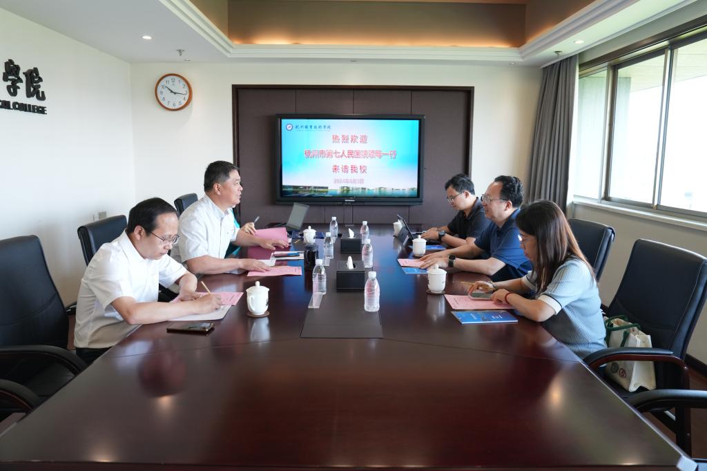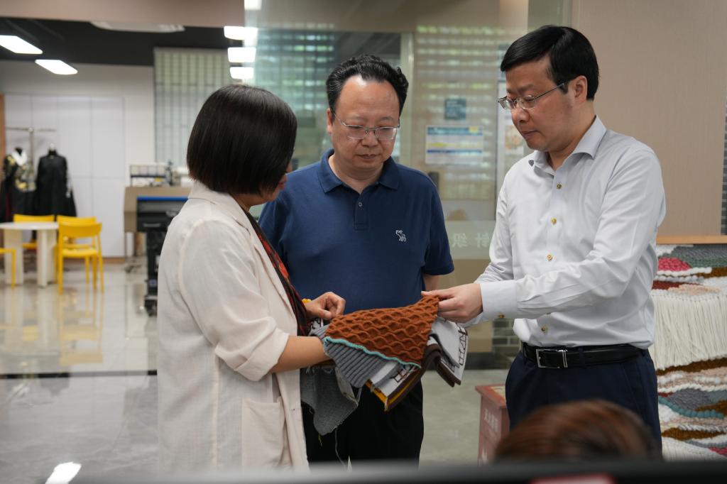 骆宏一行在赖明诚陪同下实地走访了达利女装学院、浙乡非遗馆和心理中心,双方在行政楼508会议室开展座谈。