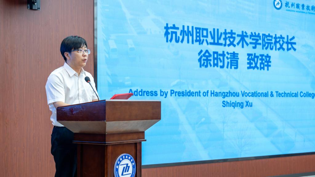 典礼仪式上,徐时清和李永美为全体留学生佩戴杭州职业技术学院校徽。乌格瓦拉作为留学生代表发言,他表示学校环境优美、老师和同学热情友善,一定会珍惜来华机会好好学习,为中非友谊和发展做作贡献。