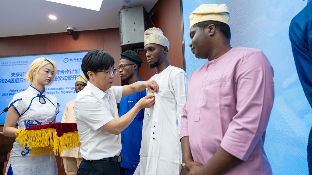 徐时清希望25名尼日利亚留学生能够在杭职院度过愉快、充实的学习生活,并对留学生提出三点希望。一是要做好中国文化的学习者。要尽快适应中国的学习、生活环境,合理规划好留学生活,积极融入中国社会,感悟中华文化魅力。二是要当好中非文化的传播者。要加强沟通交流,感受不同文化差异碰撞出的火花,努力成为中国文化的传播者、中非文明交流互鉴的“新增量”。三是要成为中非友谊的践行者。要与杭职学子在互学互鉴中增进了解、建立友谊、共同成长,为促进中非友谊发展贡献青春力量。