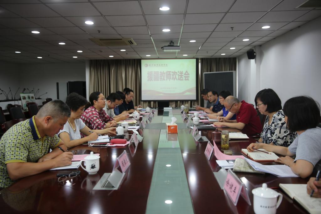 8月13日,我校在行政楼第一会议室举行援疆教师欢送会。学校党委书记安蓉泉,党委副书记赵一文,副校长许淑燕,党委委员金徐伟,党政办、组织部、宣传部、人事处、临江学院、新通国际学院相关人员出席会议,共同欢送援疆教师邹春晶、谢联恒。会议由赵一文主持。