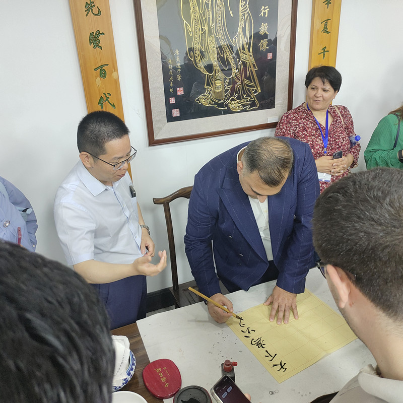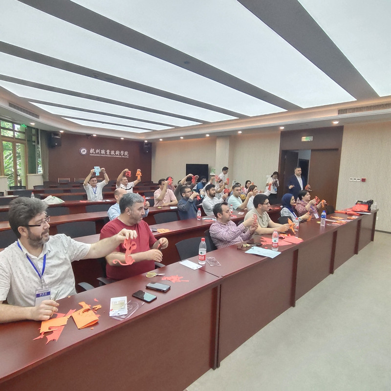 在非遗馆,学员们切身感受了中国丰富的非物质文化遗产,很多学员纷纷执笔,学习中国书法。在达利女装学院和特种设备学院实训基地,深刻感受了中国职业教育的特色和校企合作的亮点,看到了杭职院“达利现象”和“特种方案”的显著教育成果。在121会议室,大家饶有兴致地上了一堂“中国剪纸”体验课。在刘博老师的指导下,学员们拿起剪刀,沉浸式体验了中国传统剪纸文化。具有中国元素的参观体验课程,得到了学员们的高度评价。