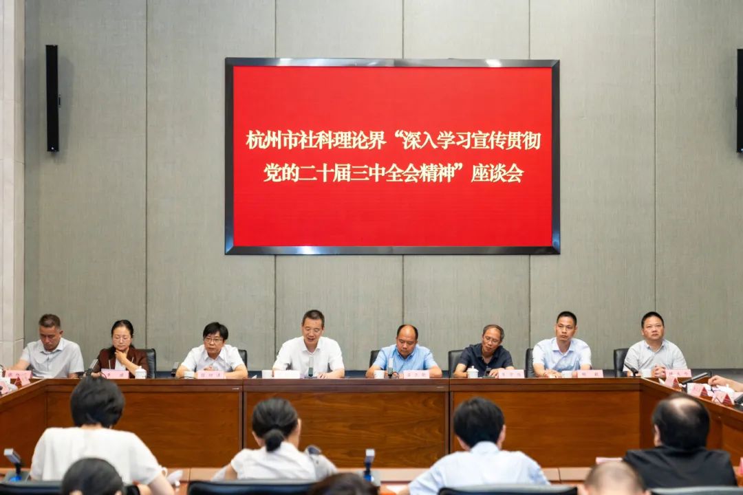8月1日上午,全市社科理论界深入学习宣传贯彻党的二十届三中全会精神座谈会在市民中心G座1号会议厅召开,会议由杭州市委宣传部和市社科联(院)共同主办。中共杭州市委宣传部理论处负责人、市社科联常务理事单位、区县(市)社科联、市社科重点研究基地、市社科普及基地、市社科社团、市属高校(党校),新闻媒体代表及市社科联(院)全体人员等参会。校长徐时清应邀出席并作交流发言。