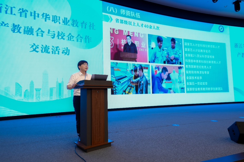 在经验交流与分享环节,金华职业技术大学、宁波职业技术学院、杭州科技职业技术学院、杭州西奥电梯有限公司等单位,分别从不同角度介绍了各自在产教融合、校企合作方面的实践探索和取得的成效,为与会者提供了有益的参考和借鉴。
