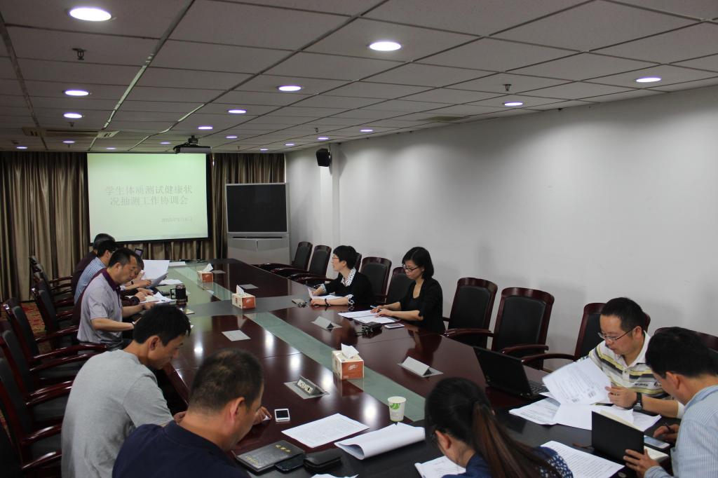 人文社科部副主任王天红传达了省教育厅关于高校学生体质健康状况抽测工作的要求,并对此次抽测工作的意义、时间、测试方案以及注意事项作了介绍,并对涉及抽测工作的二级分院和职能部门的任务进行分解。体育教研室主任刘可、教师刘涛对抽测工作做了补充说明,各参会人员对抽测工作涉及的相关事宜进行了讨论。