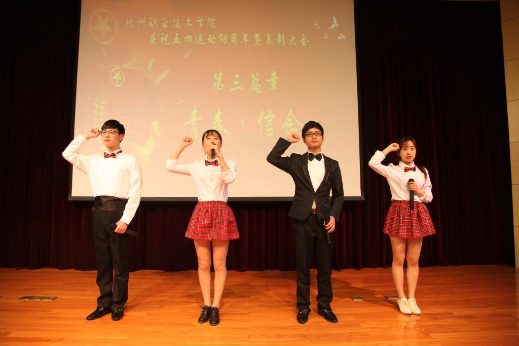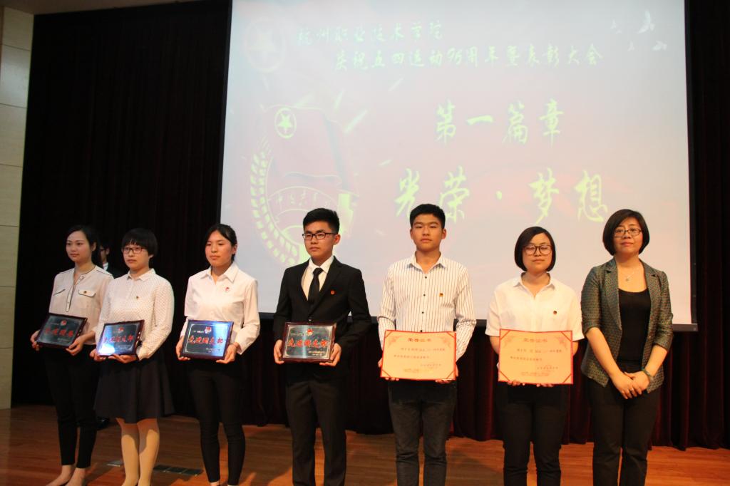 56日下午,我校庆祝“五·四”运动96周年暨表彰大会在行政楼二楼报告厅隆重召开。校党委副书记赵一文,组织部、宣传部、学工部(团委)等相关部门负责人,各二级学院党总支书记、团总支书记出席本次活动。2014年度各级各类先进集体和优秀个人、2014年 “挑战杯——彩虹人生”全国职业学校创新创效创业大赛获奖团队和指导教师、学校最美志愿者等400名师生代表参加表彰大会。