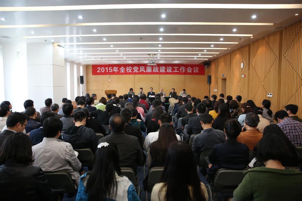 4月22日上午,2015年全校党风廉政建设工作会议在图书馆第七会议室召开。全体校领导、中层干部、纪委委员、二级学院“三办”主任、专业负责人、党总支纪检委员、专职纪检干部、重岗重职人员等近120人参加会议。市纪委驻教育局纪检监察组组长朱利民、市纪委驻教育局纪检监察室副主任徐小明出席会议。会议由校党委副书记赵一文主持。