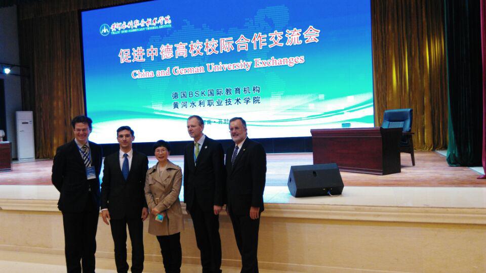 4月17 日至18日,副校长许淑燕应邀参加了在河南开封召开的“促进中德高校校际合作交流会”,全国36所国家示范和骨干高职院校代表和德国代根多夫应用技术大学、霍夫应用技术大学、魏恩施蒂芬应用技术大学代表参加会议,本次会议由德国BSK国际教育机构和黄河水利职业技术学院共同主办。